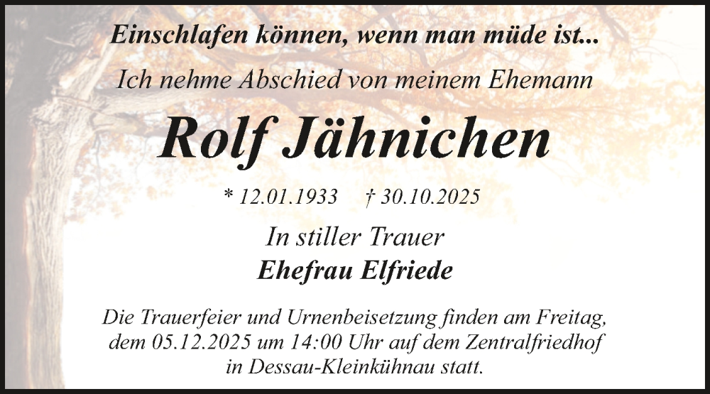 Hier finden Sie alle Traueranzeigen aus der Zeitung, die bisher für Rolf Jähnichen erschienen sind. Weitere Traueranzeigen, die in der Zeitung erscheinen, werden hier ebenfalls aufgelistet