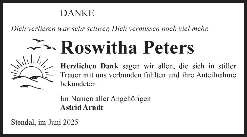 Hier finden Sie alle Traueranzeigen aus der Zeitung, die bisher für Roswitha Peters erschienen sind. Weitere Traueranzeigen, die in der Zeitung erscheinen, werden hier ebenfalls aufgelistet