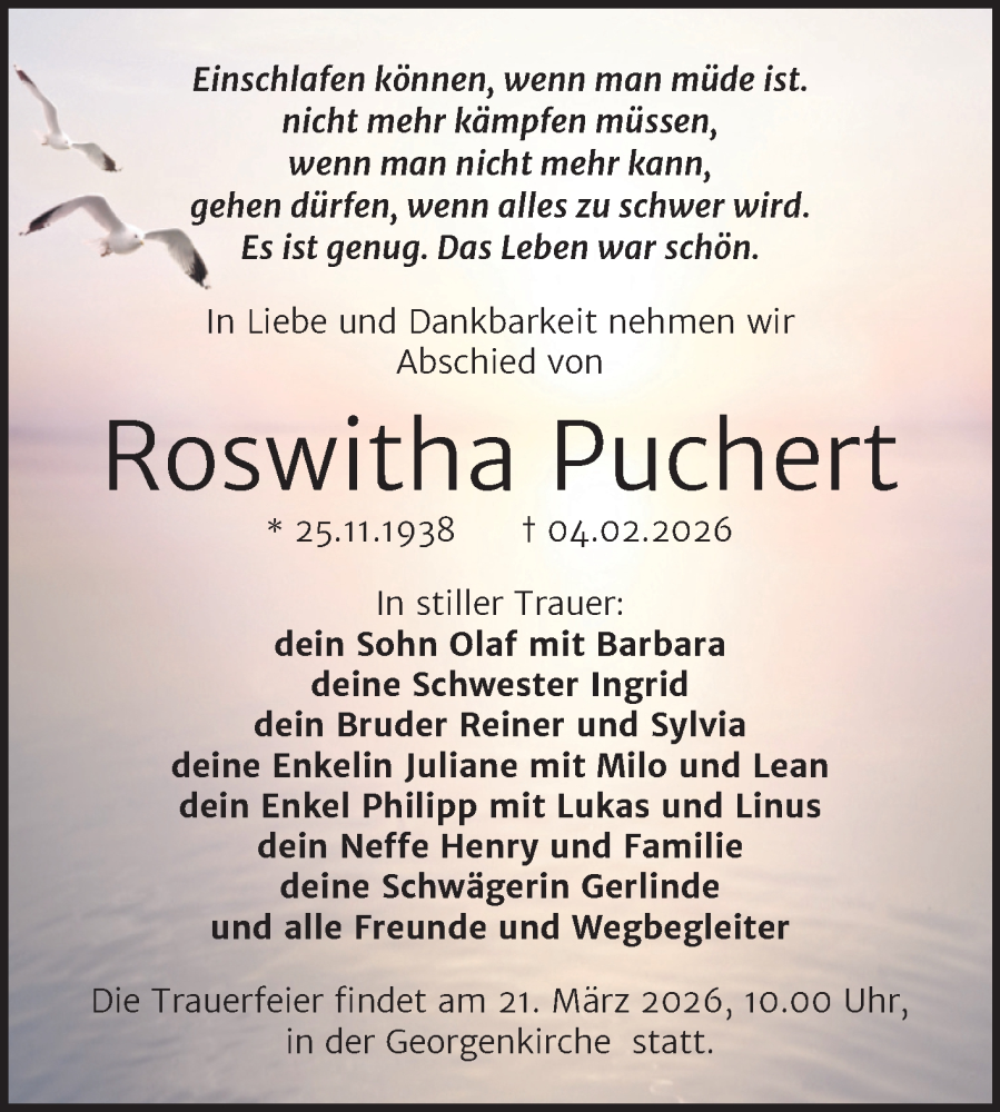 Hier finden Sie alle Traueranzeigen aus der Zeitung, die bisher für Roswitha Puchert erschienen sind. Weitere Traueranzeigen, die in der Zeitung erscheinen, werden hier ebenfalls aufgelistet