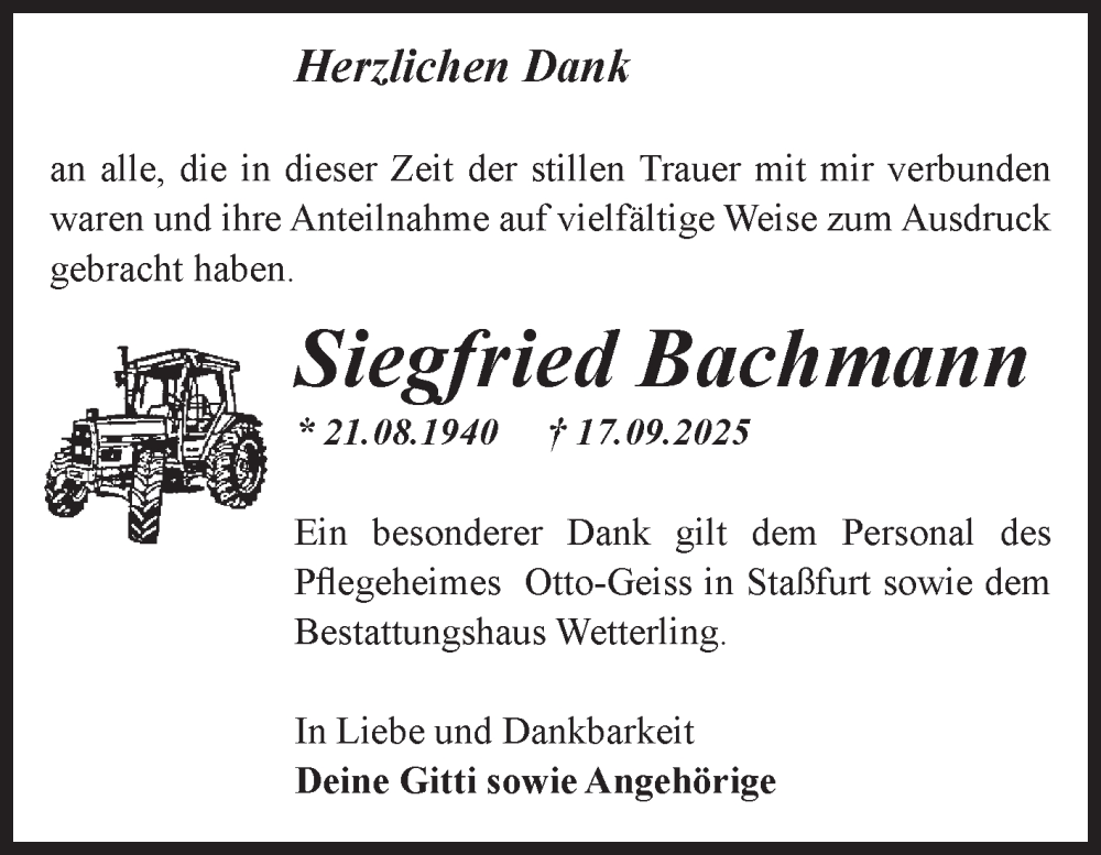 Hier finden Sie alle Traueranzeigen aus der Zeitung, die bisher für Siegfried Bachmann erschienen sind. Weitere Traueranzeigen, die in der Zeitung erscheinen, werden hier ebenfalls aufgelistet