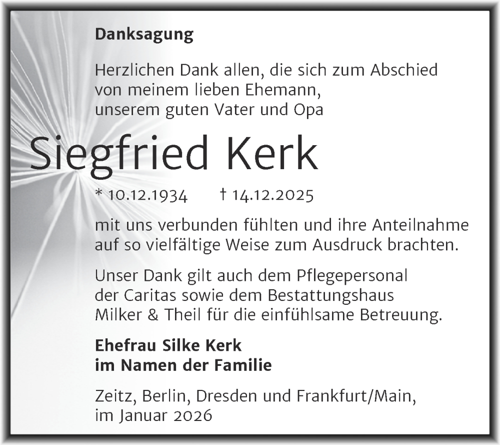 Hier finden Sie alle Traueranzeigen aus der Zeitung, die bisher für Siegfried Kerk erschienen sind. Weitere Traueranzeigen, die in der Zeitung erscheinen, werden hier ebenfalls aufgelistet