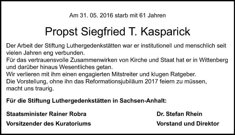 Hier finden Sie alle Traueranzeigen aus der Zeitung, die bisher für Siegfried T. Kasparick erschienen sind. Weitere Traueranzeigen, die in der Zeitung erscheinen, werden hier ebenfalls aufgelistet