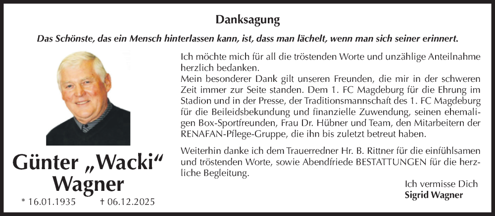 Hier finden Sie alle Traueranzeigen aus der Zeitung, die bisher für Sigrid Wagner erschienen sind. Weitere Traueranzeigen, die in der Zeitung erscheinen, werden hier ebenfalls aufgelistet