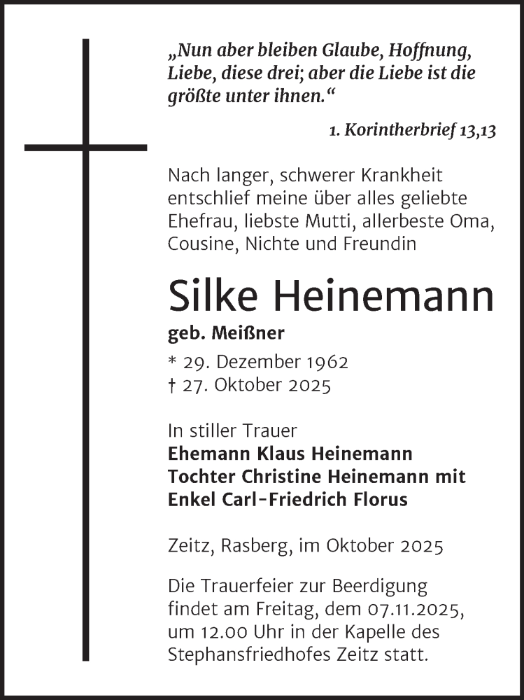 Hier finden Sie alle Traueranzeigen aus der Zeitung, die bisher für Silke Heinemann erschienen sind. Weitere Traueranzeigen, die in der Zeitung erscheinen, werden hier ebenfalls aufgelistet