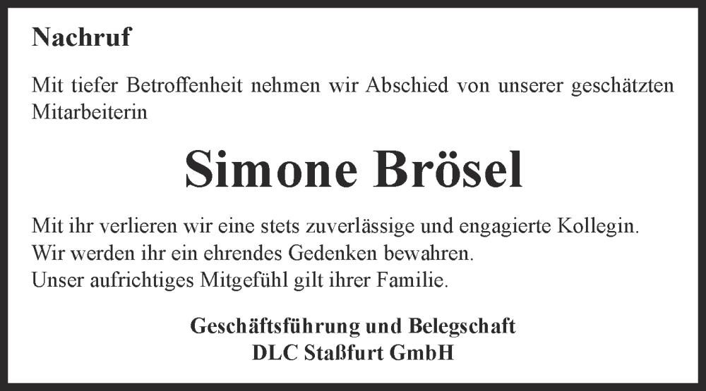 Hier finden Sie alle Traueranzeigen aus der Zeitung, die bisher für Simone Brösel erschienen sind. Weitere Traueranzeigen, die in der Zeitung erscheinen, werden hier ebenfalls aufgelistet