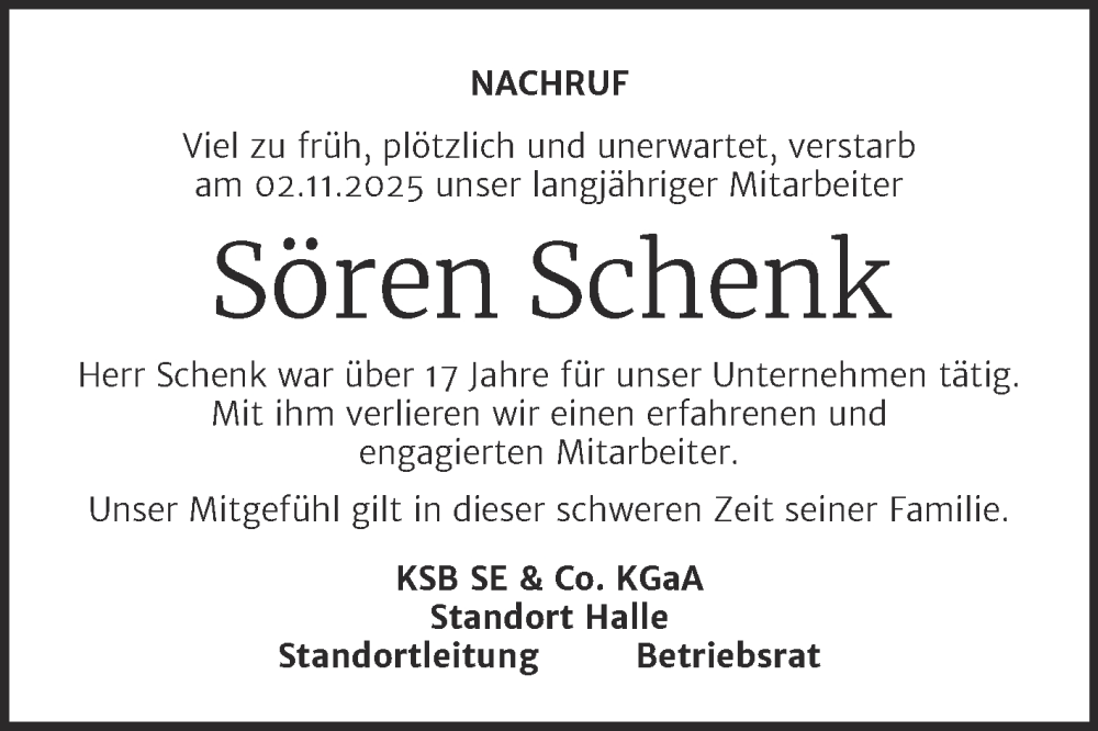 Hier finden Sie alle Traueranzeigen aus der Zeitung, die bisher für Sören Schenk erschienen sind. Weitere Traueranzeigen, die in der Zeitung erscheinen, werden hier ebenfalls aufgelistet