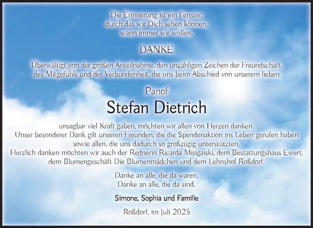 Hier finden Sie alle Traueranzeigen aus der Zeitung, die bisher für Stefan Dietrich erschienen sind. Weitere Traueranzeigen, die in der Zeitung erscheinen, werden hier ebenfalls aufgelistet