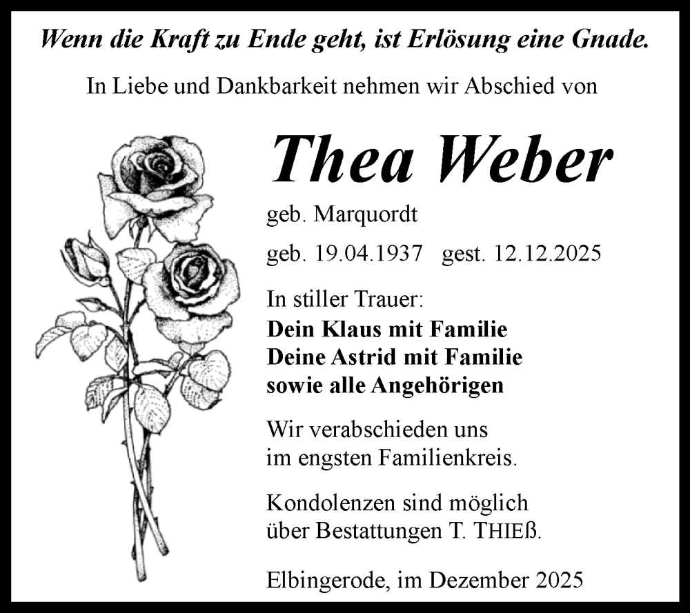 Hier finden Sie alle Traueranzeigen aus der Zeitung, die bisher für Thea Weber erschienen sind. Weitere Traueranzeigen, die in der Zeitung erscheinen, werden hier ebenfalls aufgelistet
