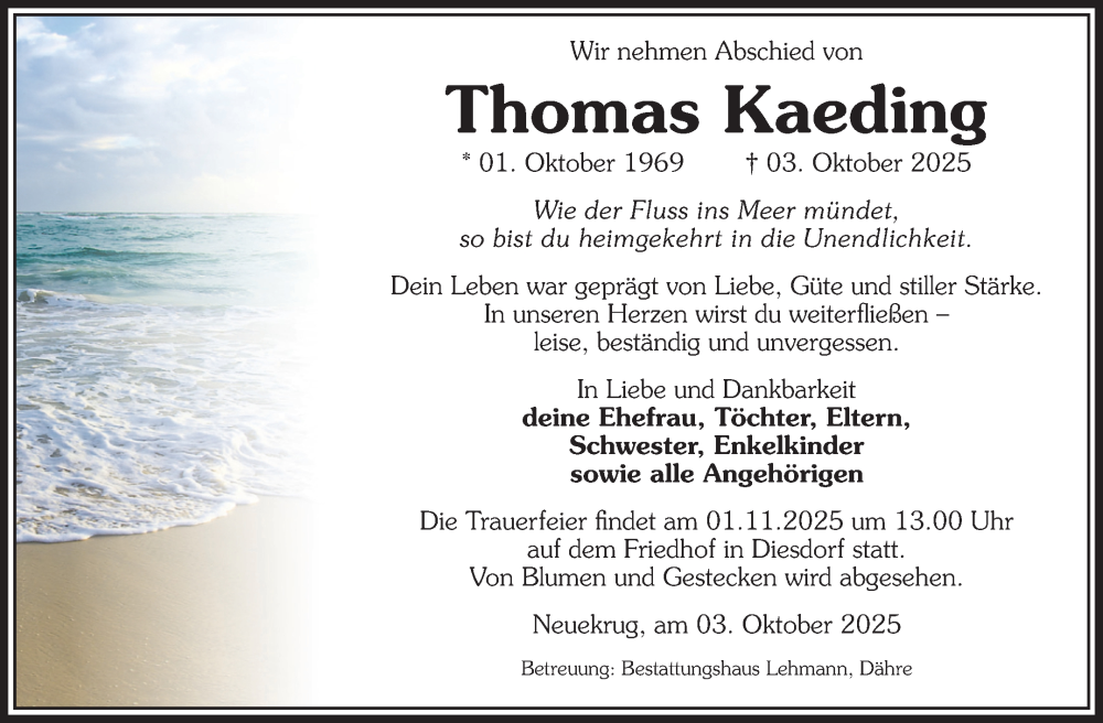 Hier finden Sie alle Traueranzeigen aus der Zeitung, die bisher für Thomas Kaeding erschienen sind. Weitere Traueranzeigen, die in der Zeitung erscheinen, werden hier ebenfalls aufgelistet