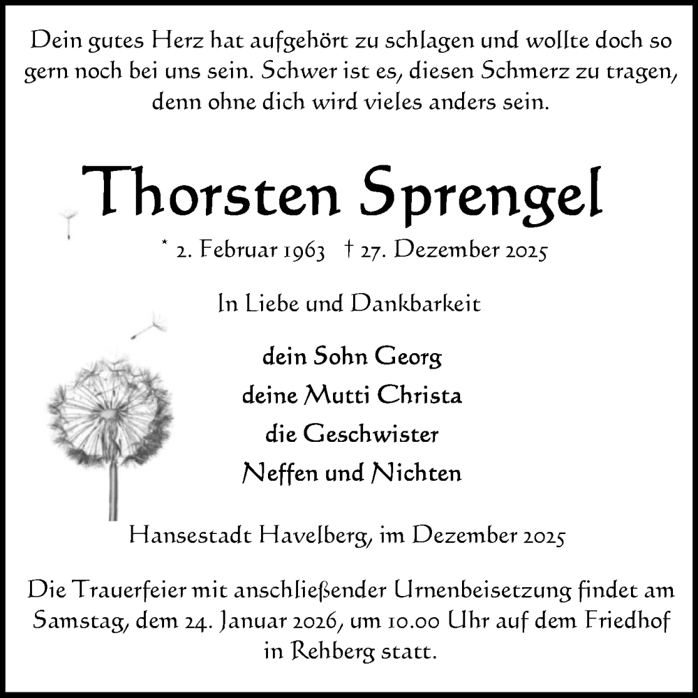 Hier finden Sie alle Traueranzeigen aus der Zeitung, die bisher für Thorsten Sprengel erschienen sind. Weitere Traueranzeigen, die in der Zeitung erscheinen, werden hier ebenfalls aufgelistet