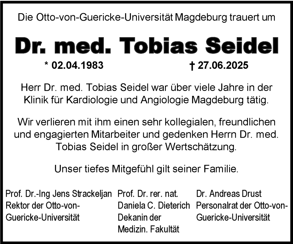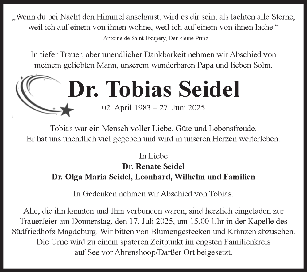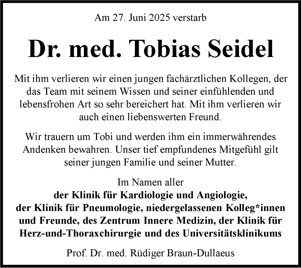 Hier finden Sie alle Traueranzeigen aus der Zeitung, die bisher für Tobias Seidel erschienen sind. Weitere Traueranzeigen, die in der Zeitung erscheinen, werden hier ebenfalls aufgelistet