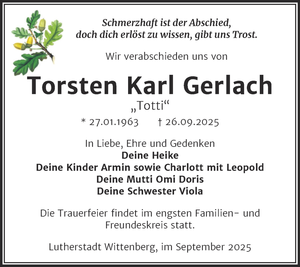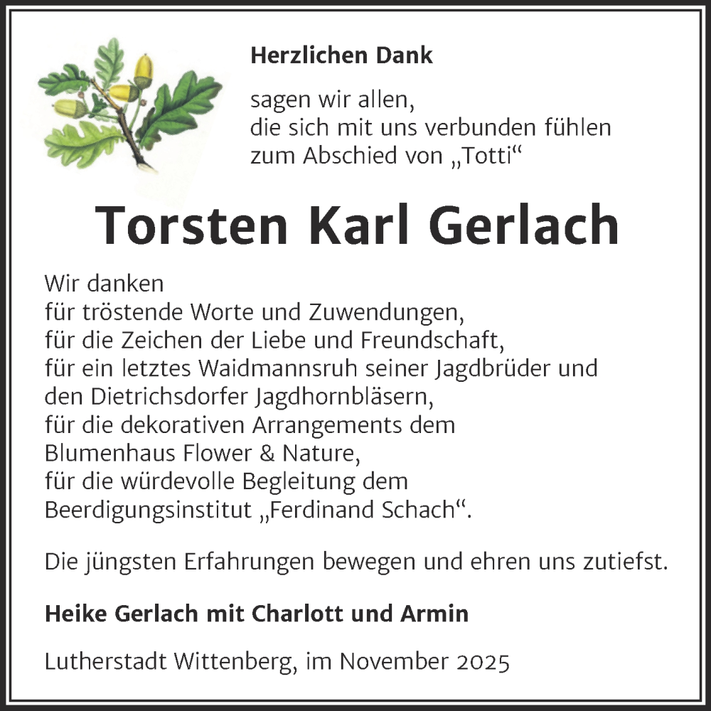 Hier finden Sie alle Traueranzeigen aus der Zeitung, die bisher für Torsten Karl Gerlach erschienen sind. Weitere Traueranzeigen, die in der Zeitung erscheinen, werden hier ebenfalls aufgelistet
