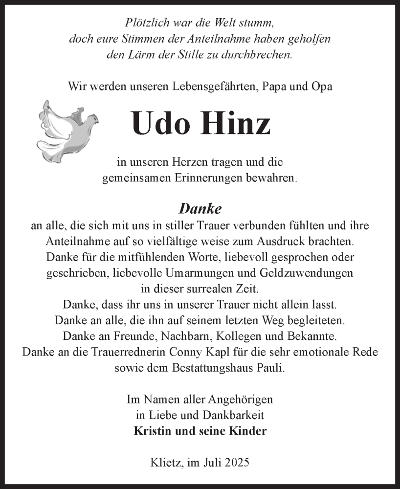 Hier finden Sie alle Traueranzeigen aus der Zeitung, die bisher für Udo Hinz erschienen sind. Weitere Traueranzeigen, die in der Zeitung erscheinen, werden hier ebenfalls aufgelistet