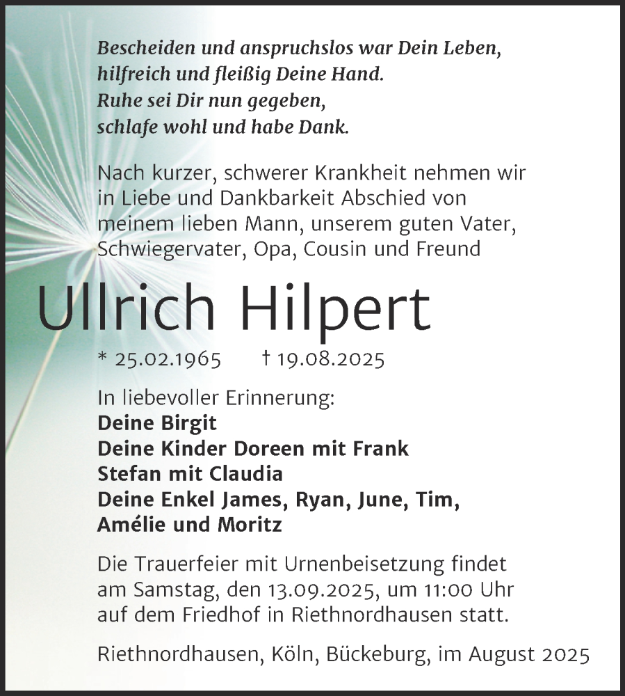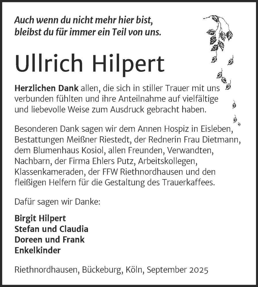 Hier finden Sie alle Traueranzeigen aus der Zeitung, die bisher für Ullrich Hilpert erschienen sind. Weitere Traueranzeigen, die in der Zeitung erscheinen, werden hier ebenfalls aufgelistet