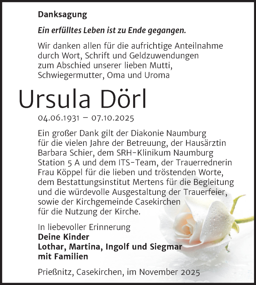 Hier finden Sie alle Traueranzeigen aus der Zeitung, die bisher für Ursula Dörl erschienen sind. Weitere Traueranzeigen, die in der Zeitung erscheinen, werden hier ebenfalls aufgelistet