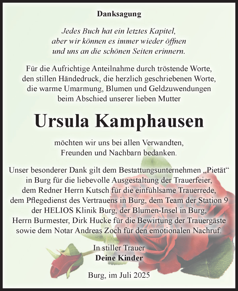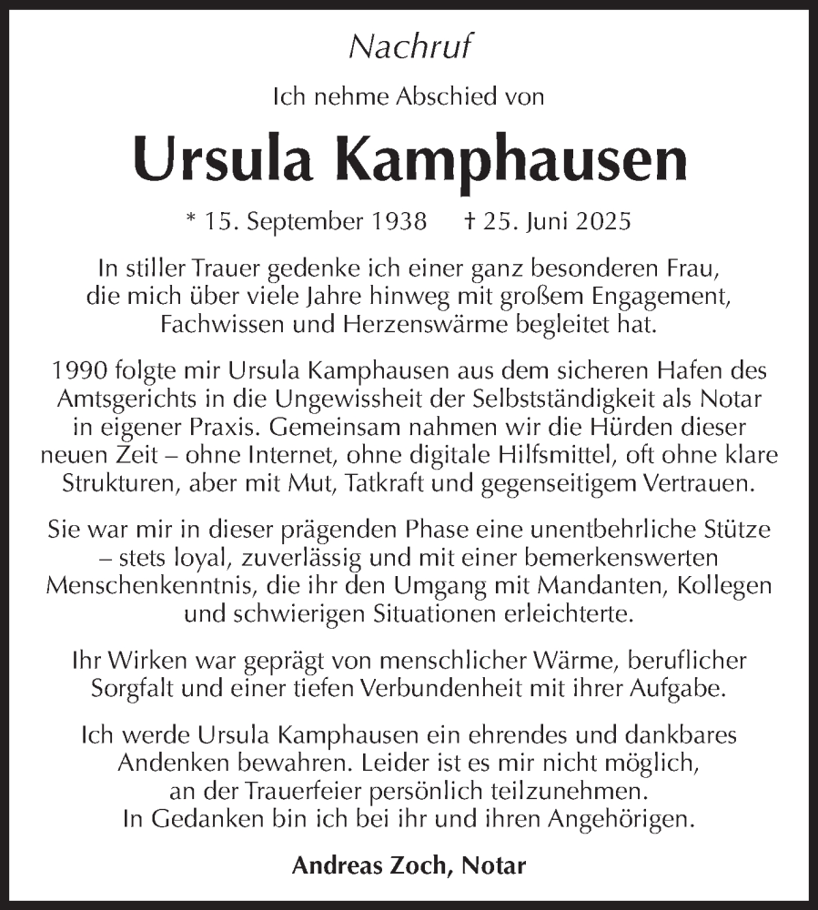 Hier finden Sie alle Traueranzeigen aus der Zeitung, die bisher für Ursula Kamphausen erschienen sind. Weitere Traueranzeigen, die in der Zeitung erscheinen, werden hier ebenfalls aufgelistet