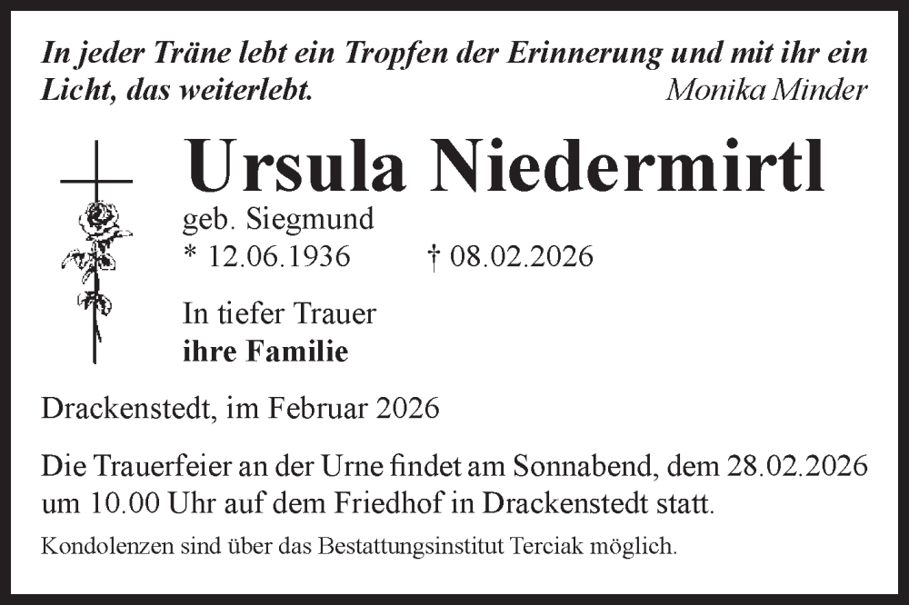 Hier finden Sie alle Traueranzeigen aus der Zeitung, die bisher für Ursula Niedermirtl erschienen sind. Weitere Traueranzeigen, die in der Zeitung erscheinen, werden hier ebenfalls aufgelistet