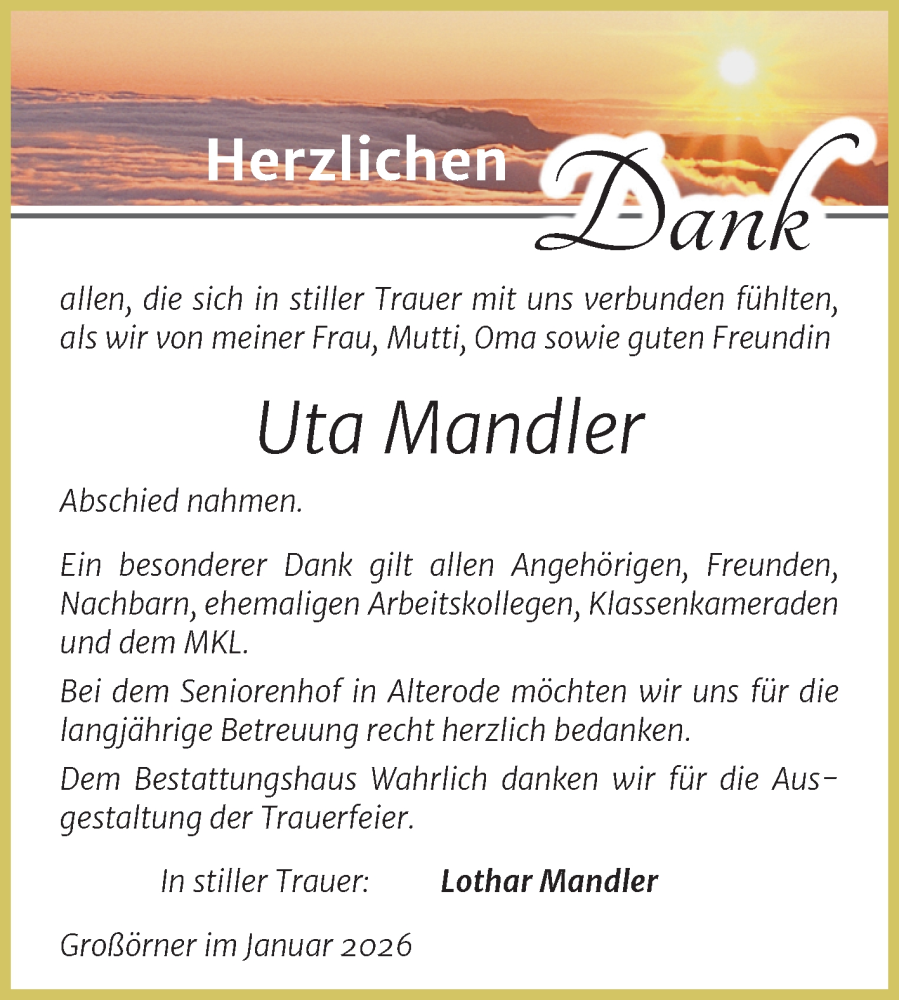 Hier finden Sie alle Traueranzeigen aus der Zeitung, die bisher für Uta Mandler erschienen sind. Weitere Traueranzeigen, die in der Zeitung erscheinen, werden hier ebenfalls aufgelistet
