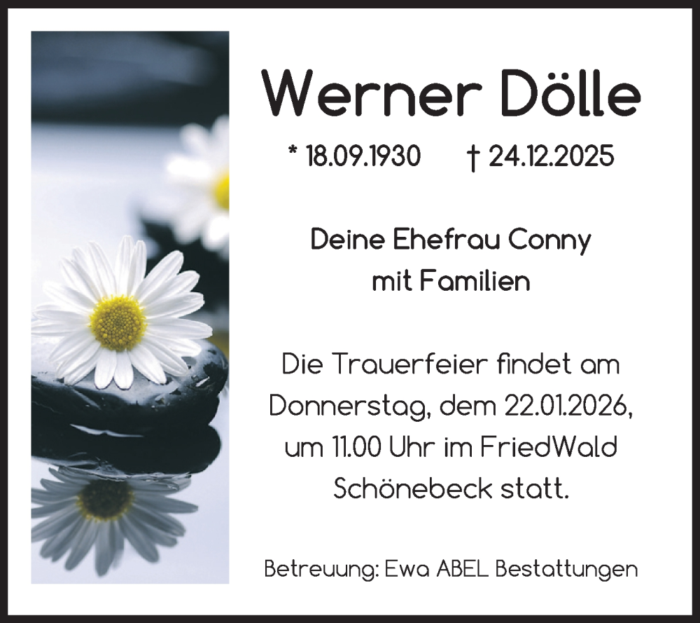Hier finden Sie alle Traueranzeigen aus der Zeitung, die bisher für Werner Dölle erschienen sind. Weitere Traueranzeigen, die in der Zeitung erscheinen, werden hier ebenfalls aufgelistet