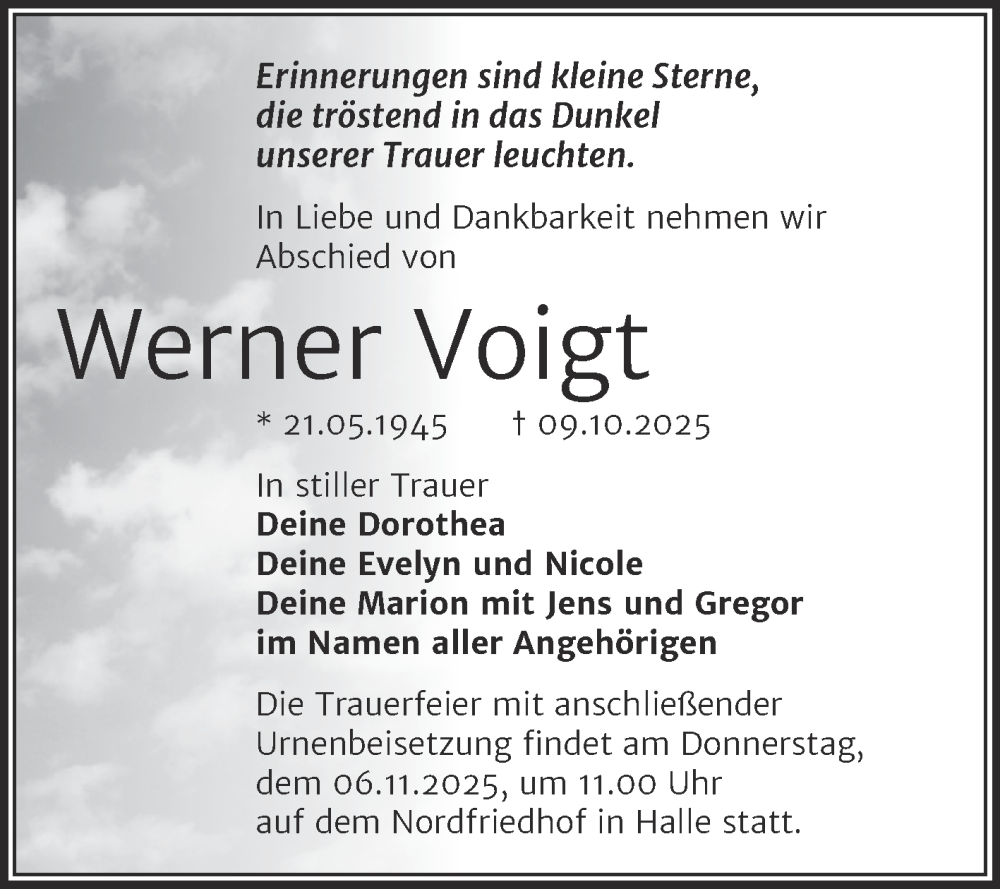Hier finden Sie alle Traueranzeigen aus der Zeitung, die bisher für Werner Voigt erschienen sind. Weitere Traueranzeigen, die in der Zeitung erscheinen, werden hier ebenfalls aufgelistet