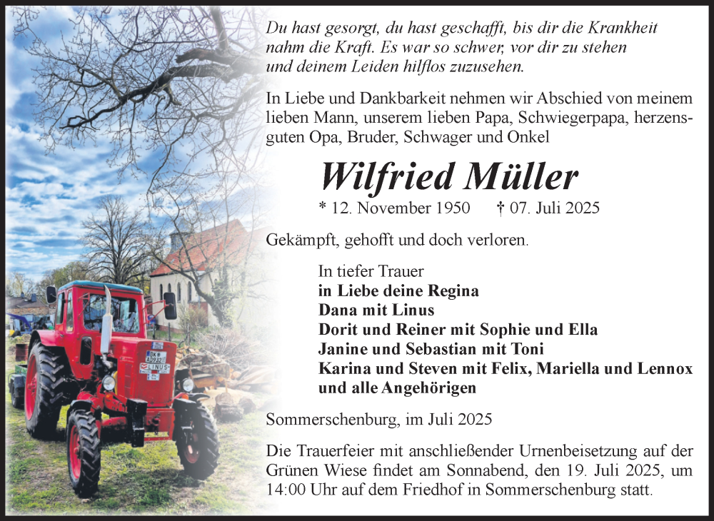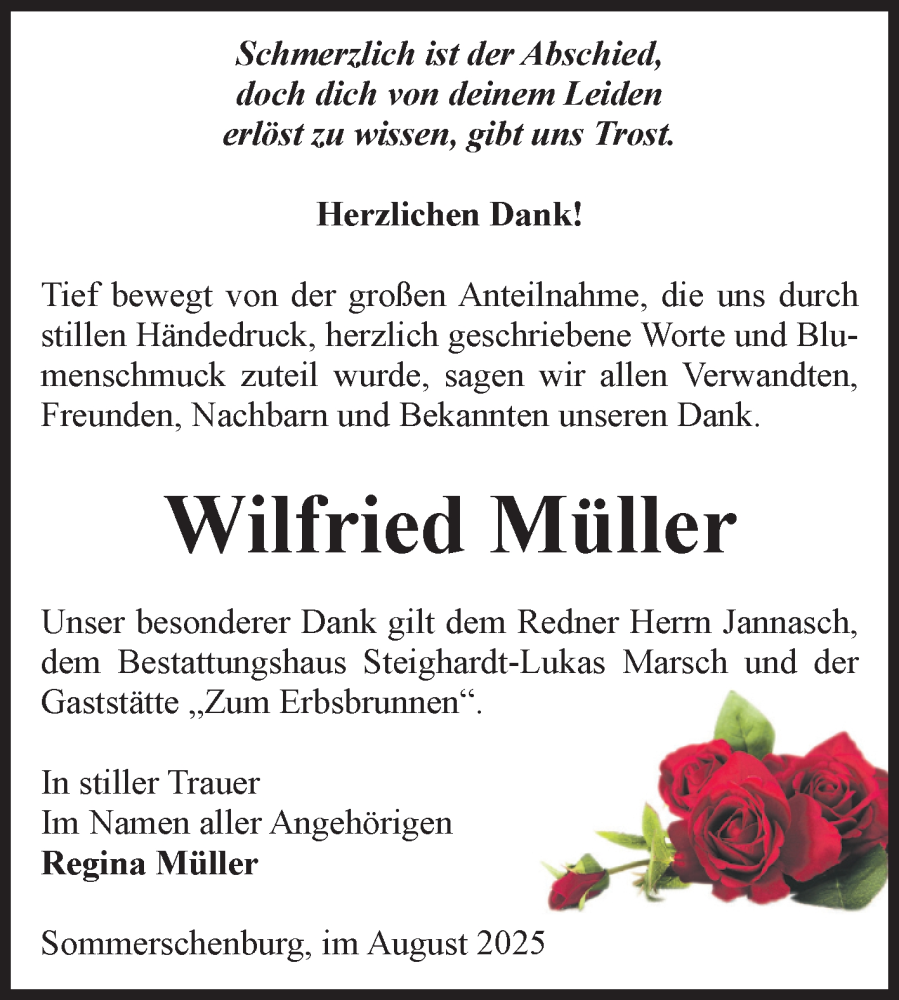 Hier finden Sie alle Traueranzeigen aus der Zeitung, die bisher für Wilfried Müller erschienen sind. Weitere Traueranzeigen, die in der Zeitung erscheinen, werden hier ebenfalls aufgelistet