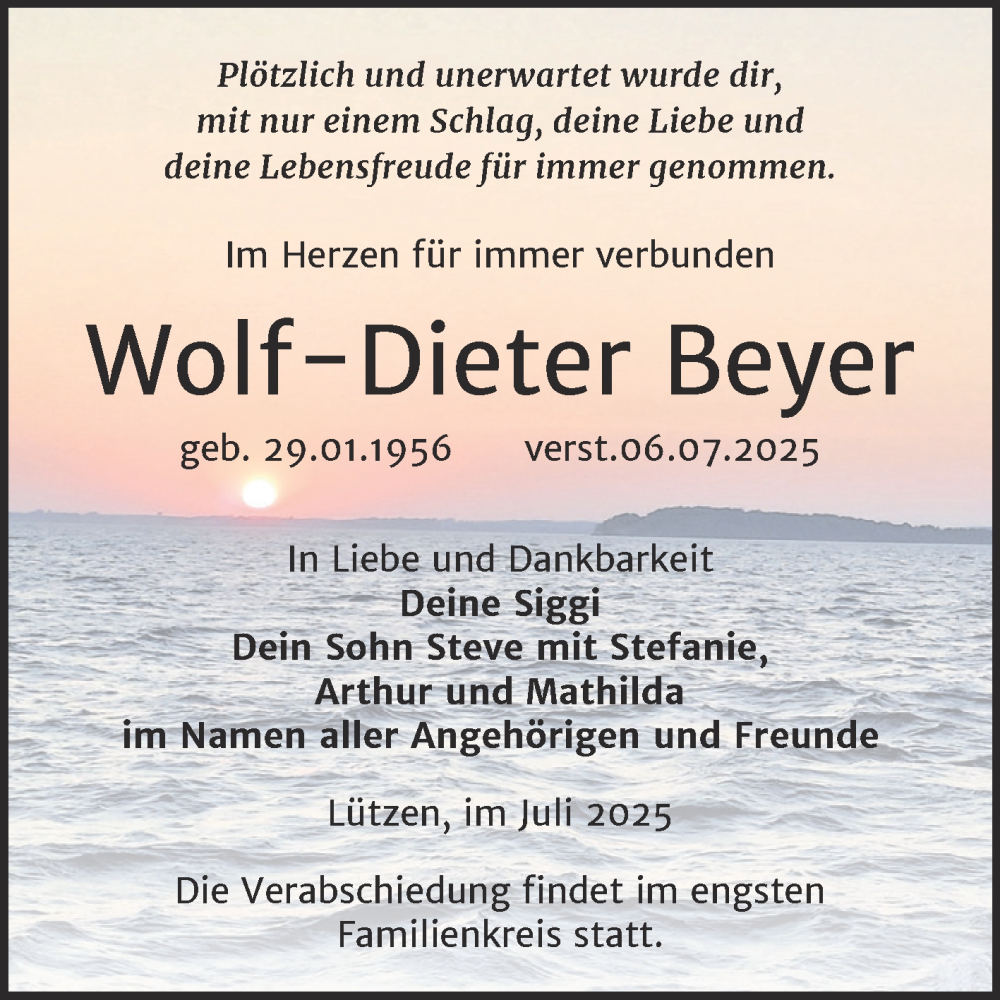 Hier finden Sie alle Traueranzeigen aus der Zeitung, die bisher für Wolf-Dieter Beyer erschienen sind. Weitere Traueranzeigen, die in der Zeitung erscheinen, werden hier ebenfalls aufgelistet