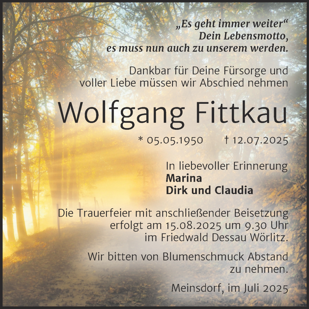 Hier finden Sie alle Traueranzeigen aus der Zeitung, die bisher für Wolfgang Fittkau erschienen sind. Weitere Traueranzeigen, die in der Zeitung erscheinen, werden hier ebenfalls aufgelistet