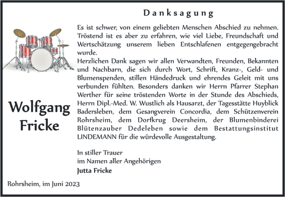 Hier finden Sie alle Traueranzeigen aus der Zeitung, die bisher für Wolfgang Fricke erschienen sind. Weitere Traueranzeigen, die in der Zeitung erscheinen, werden hier ebenfalls aufgelistet