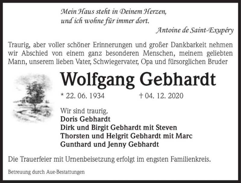 Hier finden Sie alle Traueranzeigen aus der Zeitung, die bisher für Wolfgang Gebhardt erschienen sind. Weitere Traueranzeigen, die in der Zeitung erscheinen, werden hier ebenfalls aufgelistet