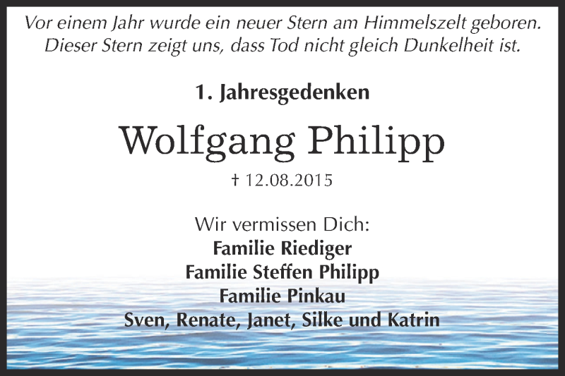 Hier finden Sie alle Traueranzeigen aus der Zeitung, die bisher für Wolfgang Philipp erschienen sind. Weitere Traueranzeigen, die in der Zeitung erscheinen, werden hier ebenfalls aufgelistet