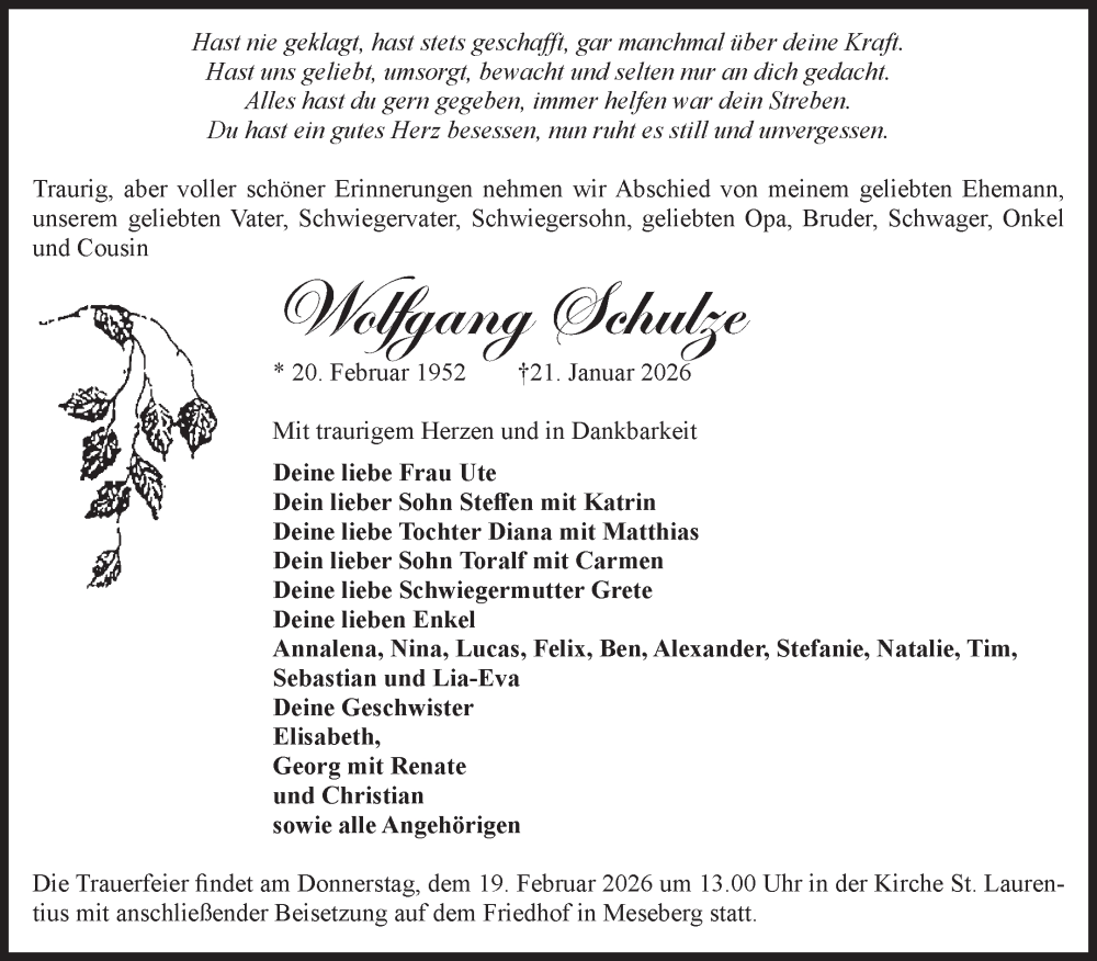 Hier finden Sie alle Traueranzeigen aus der Zeitung, die bisher für Wolfgang Schulze erschienen sind. Weitere Traueranzeigen, die in der Zeitung erscheinen, werden hier ebenfalls aufgelistet
