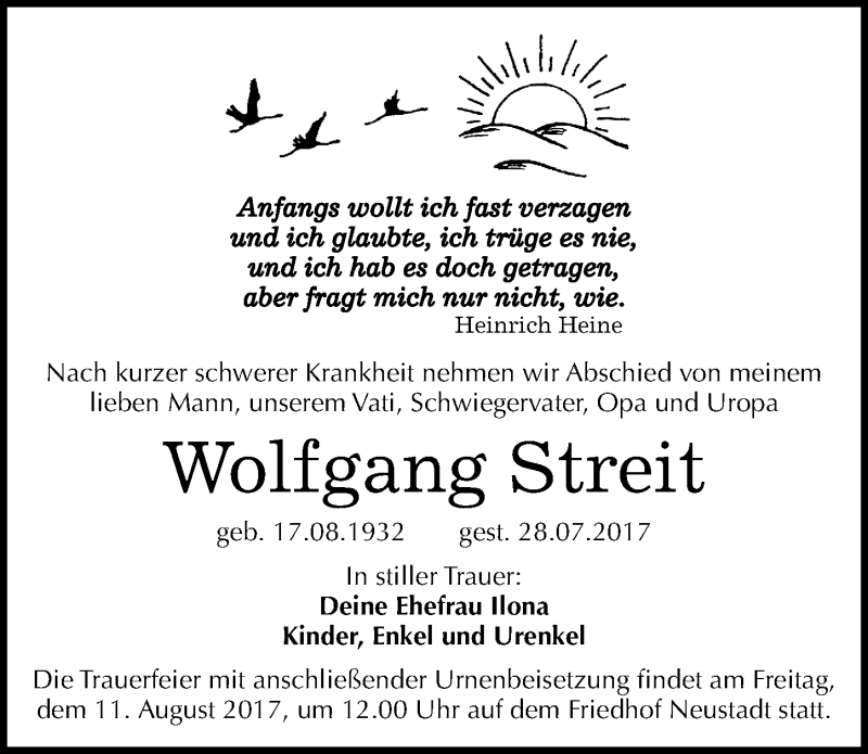 Hier finden Sie alle Traueranzeigen aus der Zeitung, die bisher für Wolfgang Streit erschienen sind. Weitere Traueranzeigen, die in der Zeitung erscheinen, werden hier ebenfalls aufgelistet